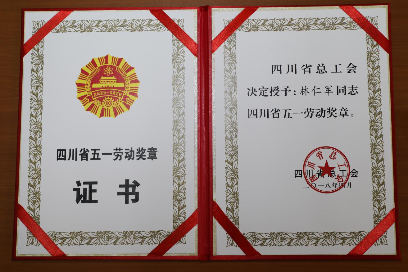 2018年,四川國光農化股份有限公司生產部液劑加工車間主任林仁軍榮獲四川省總工會頒發的“四川省五一勞動獎章”。