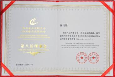 2014年1月,經第八屆理事會第一次會議表決通過,公司董事長顏昌緒先生選舉為四川省企業聯合會/四川省企業家協會第八屆理事會常務理事。